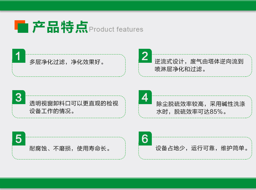 簡介:  噴淋塔(俗稱:水淋塔)是一種處理煙塵廢氣的濕式環保設備,可適用于發電廠燃燒煙塵、鋼鐵廠、鍋爐燃燒、垃圾燃燒等煙塵廢氣處理,這類的煙氣粉塵容易溶于水,噴淋塔是處理這類煙氣粉塵的不二之選。煙氣粉塵從塔底進入塔內,塔內有填料支撐板,噴淋塔從塔頂噴出液體,液體均勻的分布在塔內和污染物充分接觸,達到凈化的效果,最后塔頂排出。